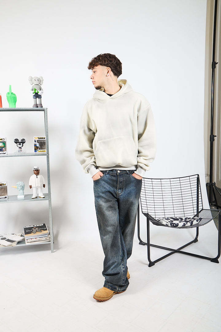 Felpa boxy fit in policotone con sfumatura totale mood slavata.