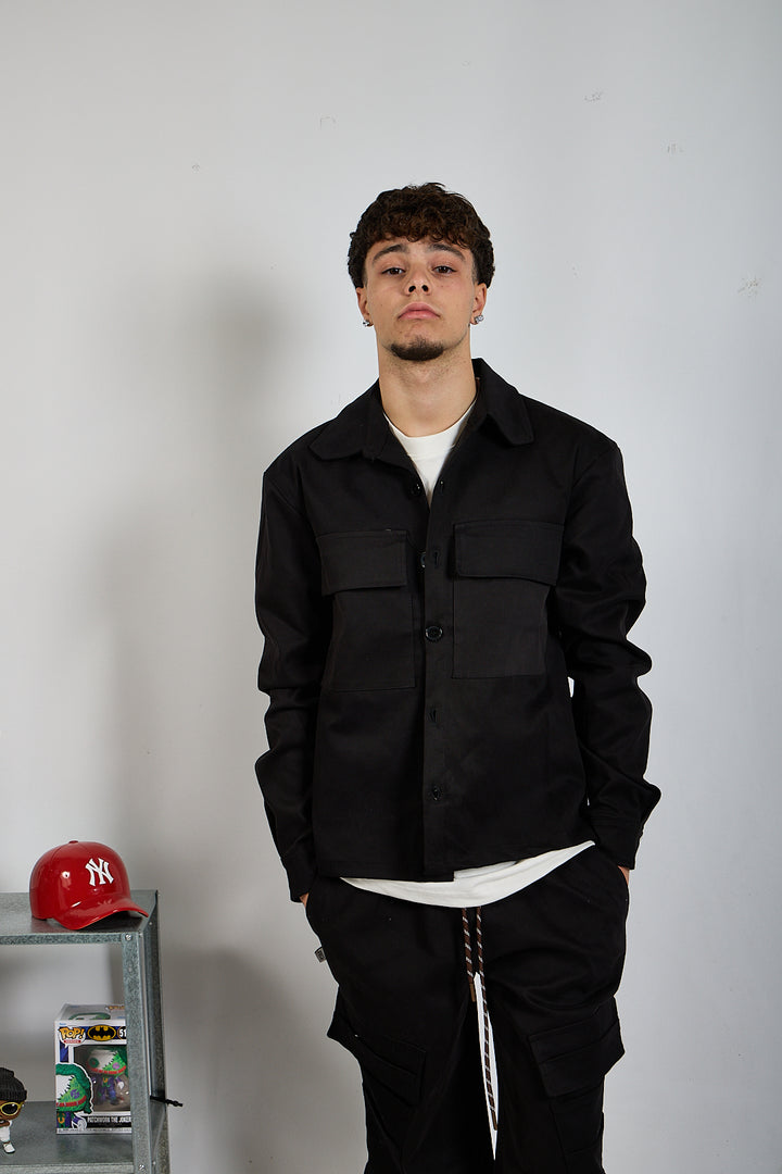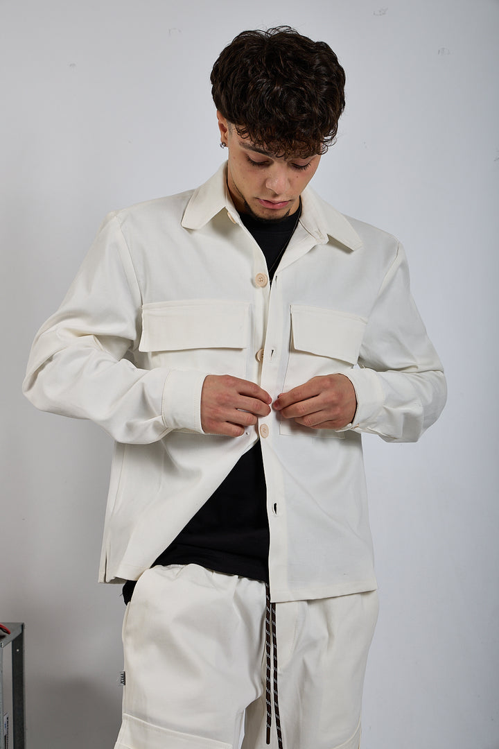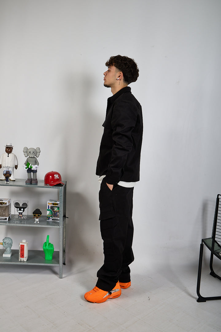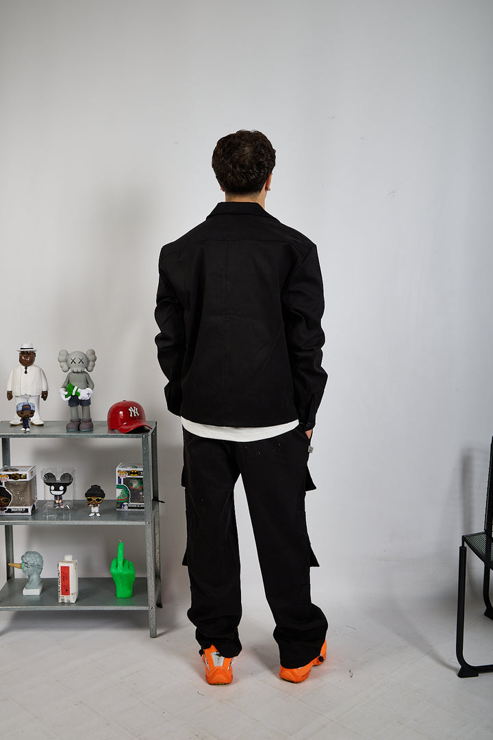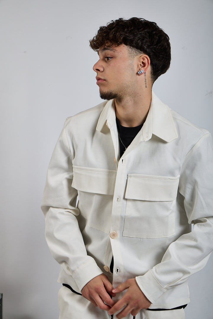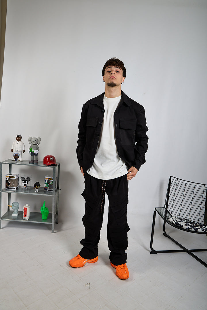 Cordinato in tessuto gabardina del brand fear of love composto da camicia jacket e cargo pant