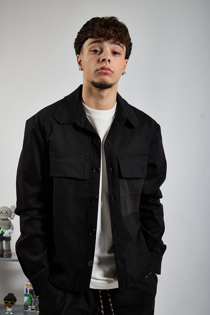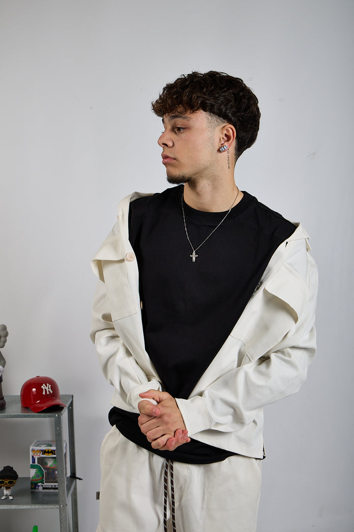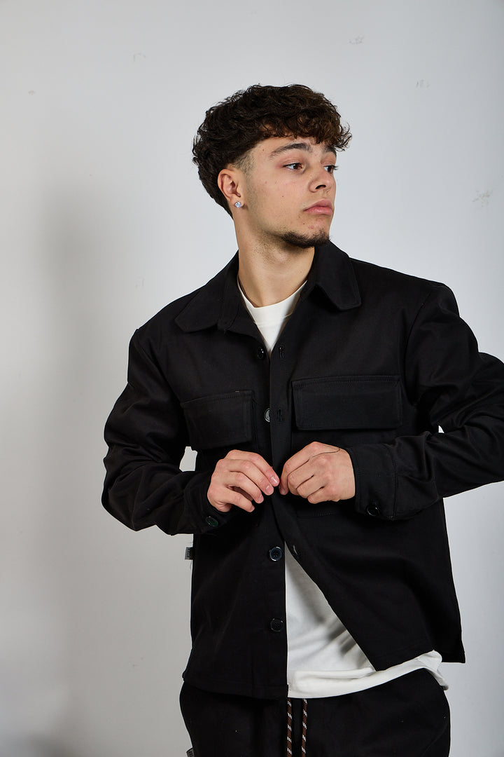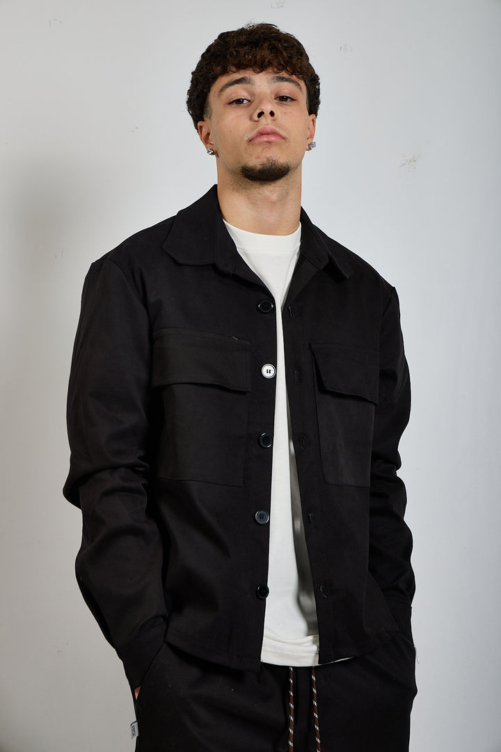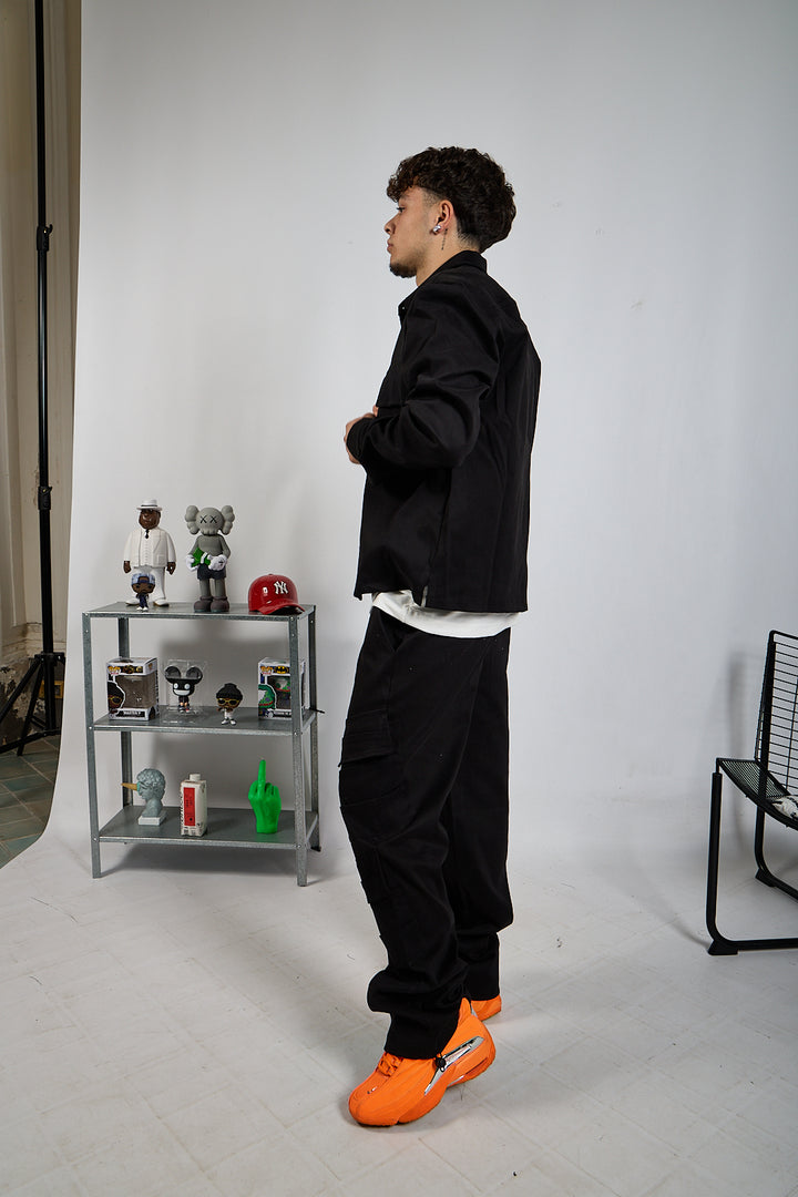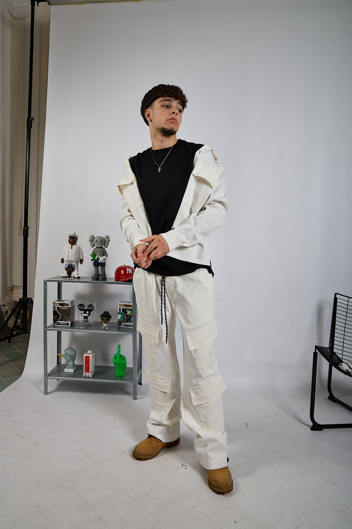 Cordinato in tessuto gabardina del brand fear of love composto da camicia jacket e cargo pant