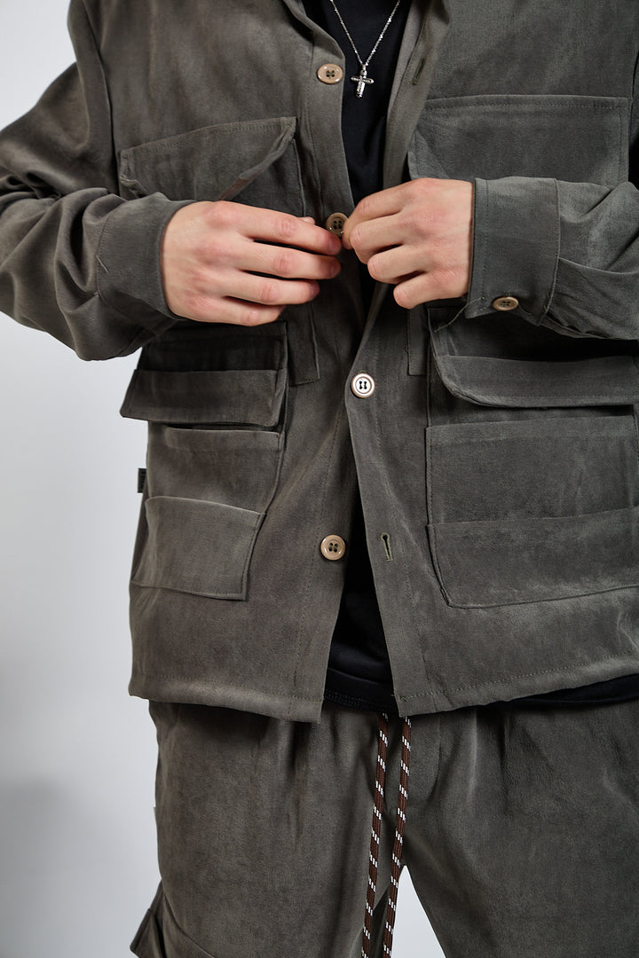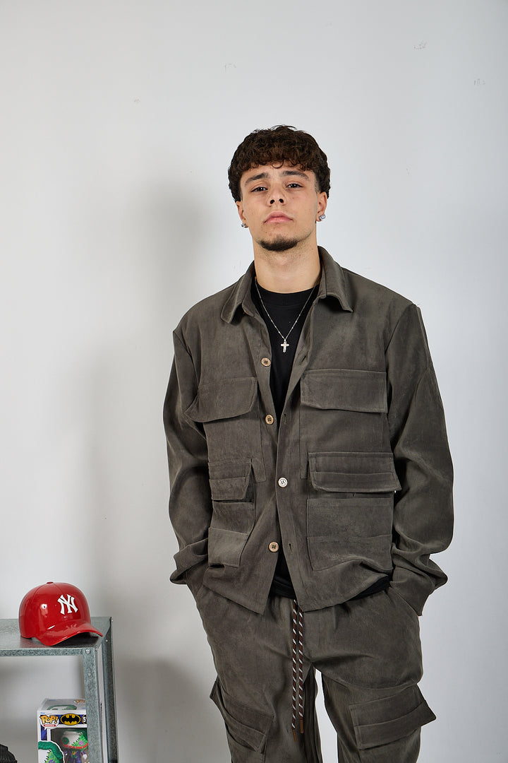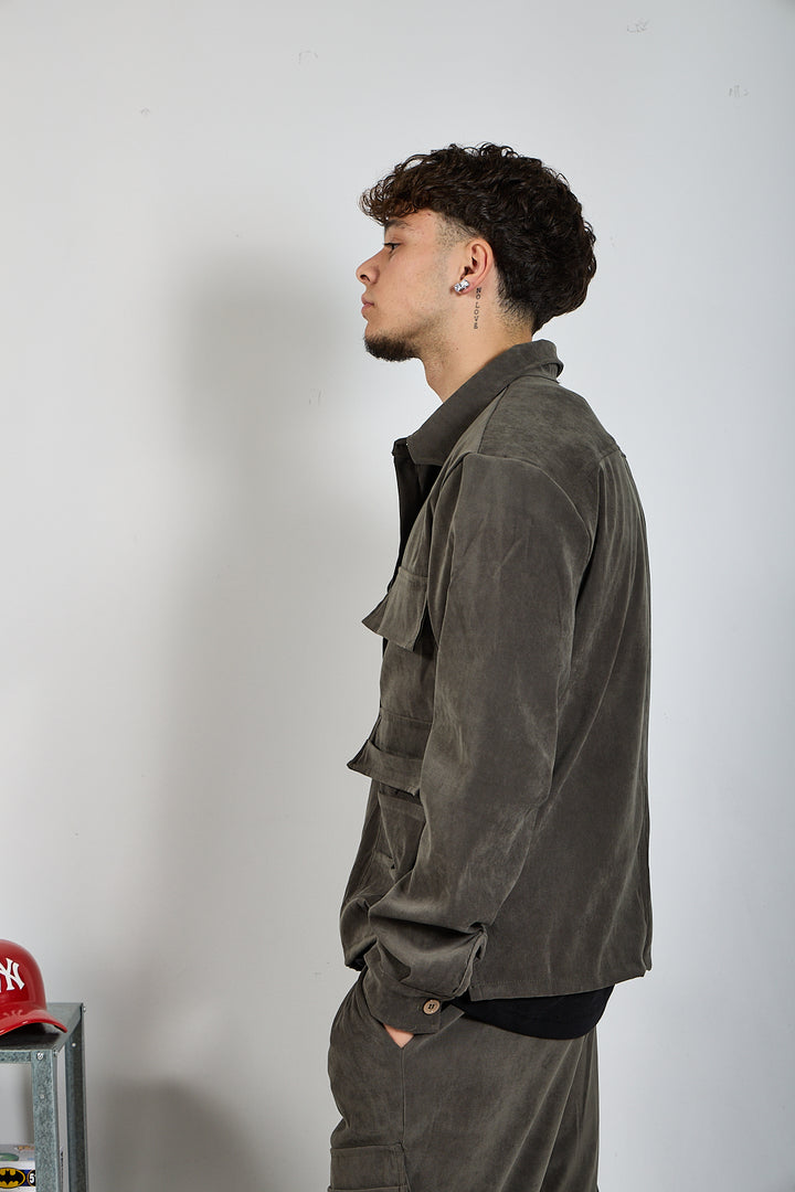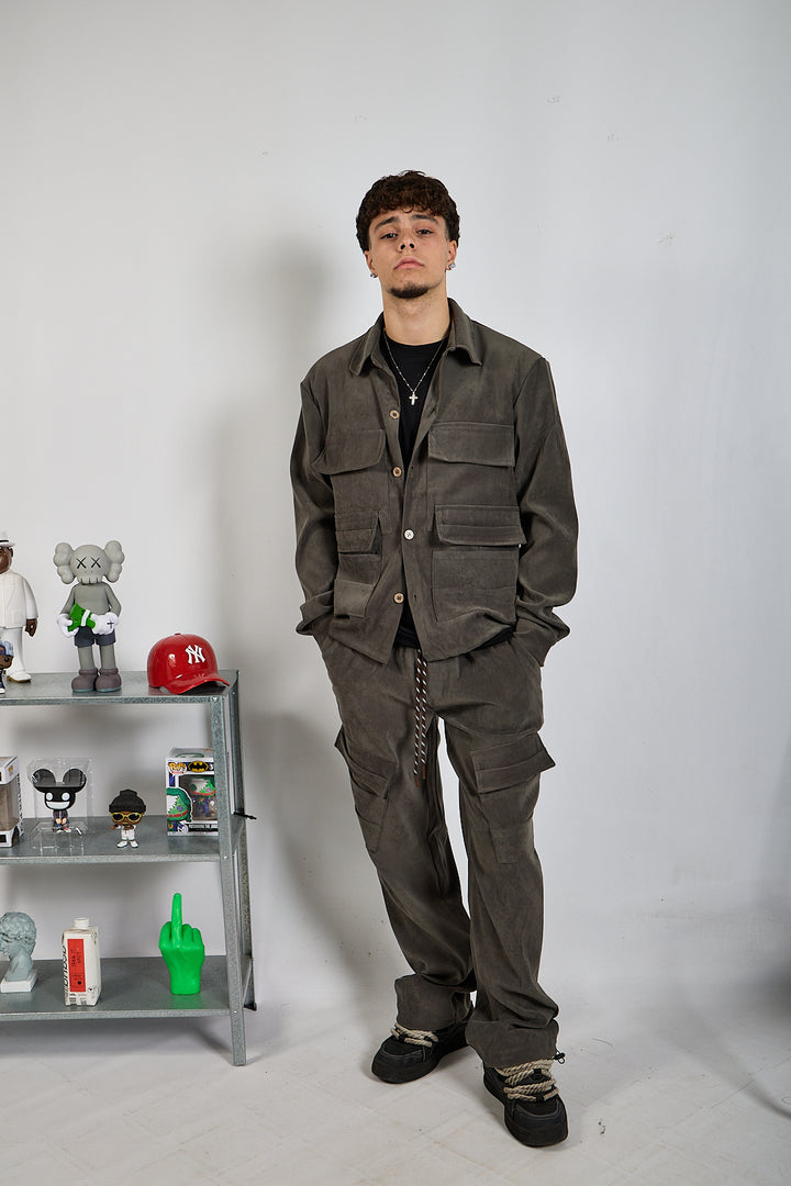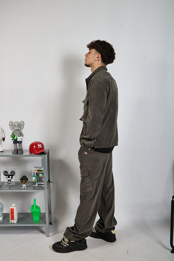 Cordinato fear of love in dainetto composto da camicia jacket con tasconi e pant cargo.