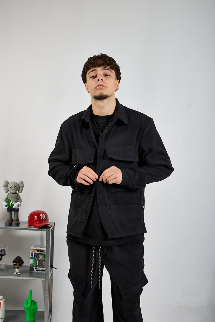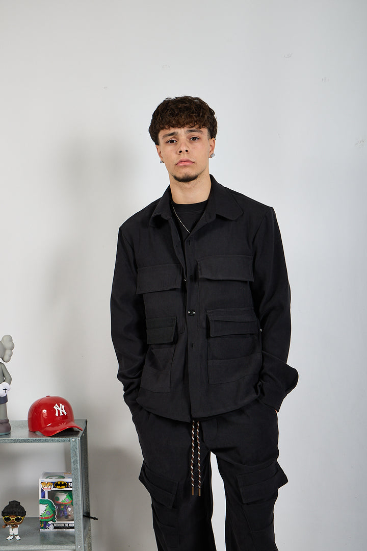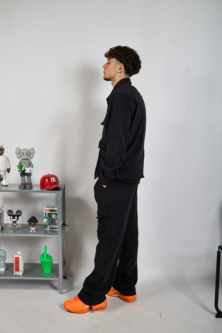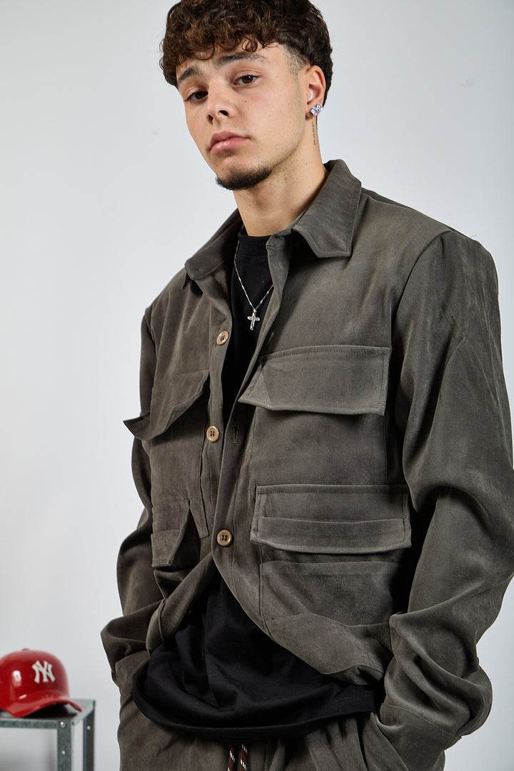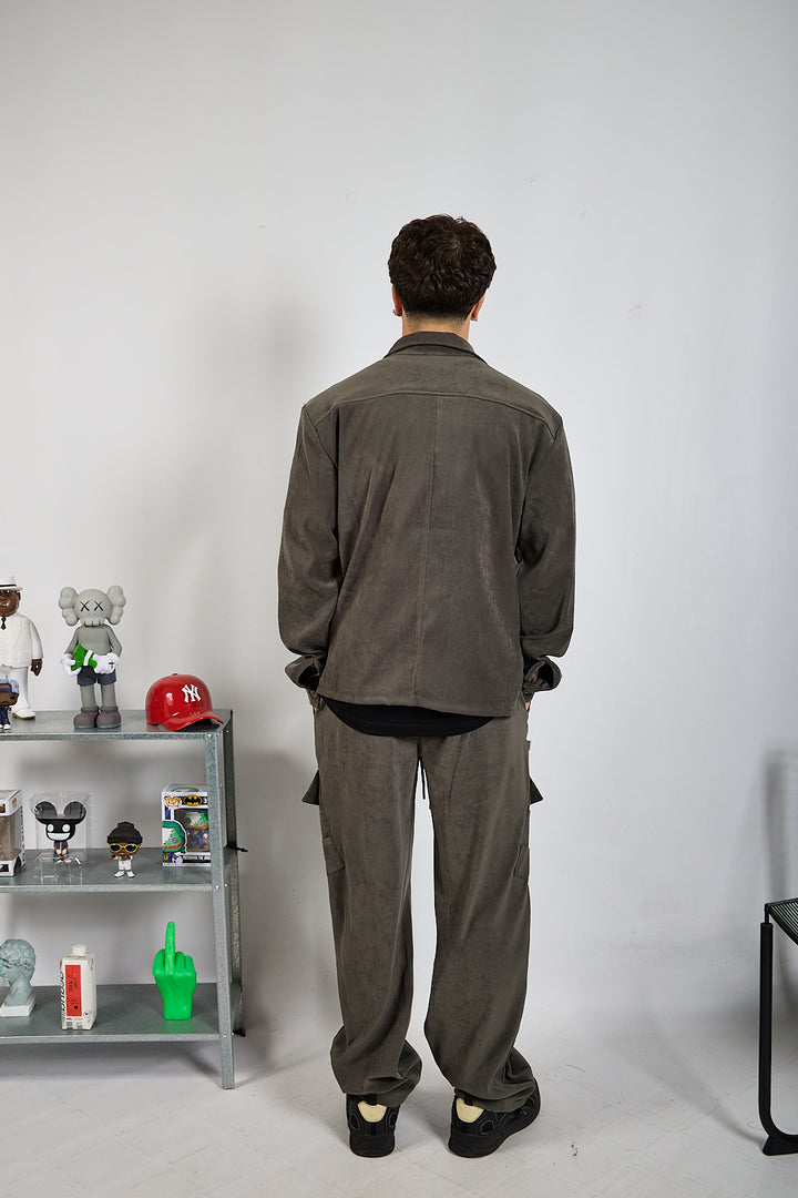 Cordinato fear of love in dainetto composto da camicia jacket con tasconi e pant cargo.