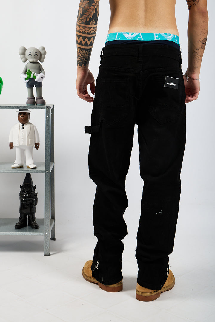 Jeans nero mood carpenter con vestibilità flared e zip alle caviglie.